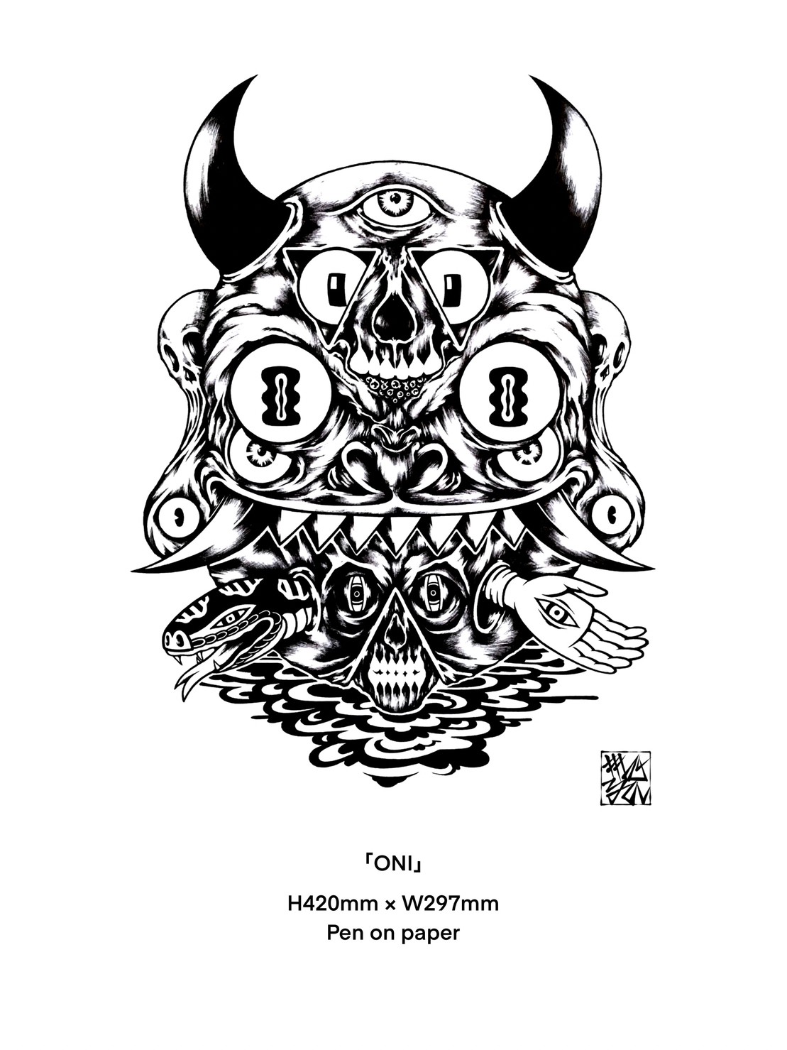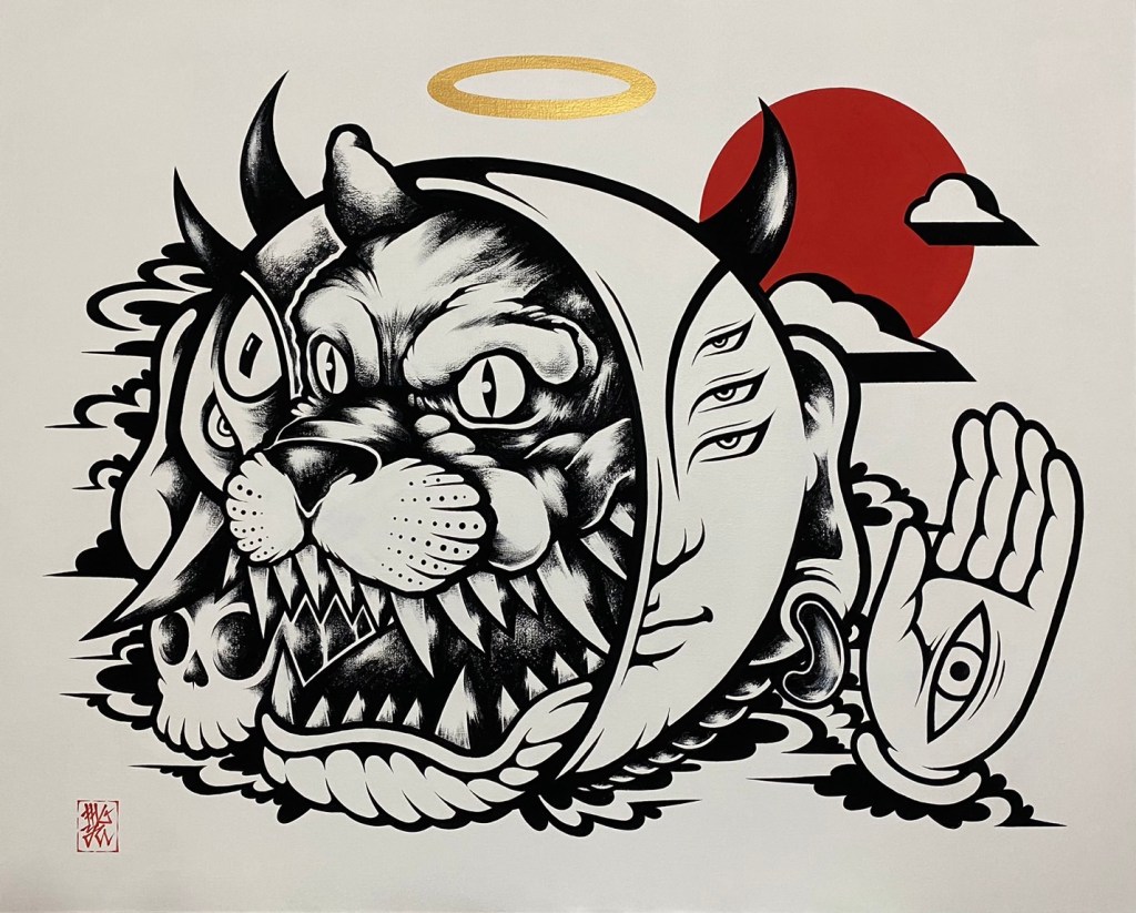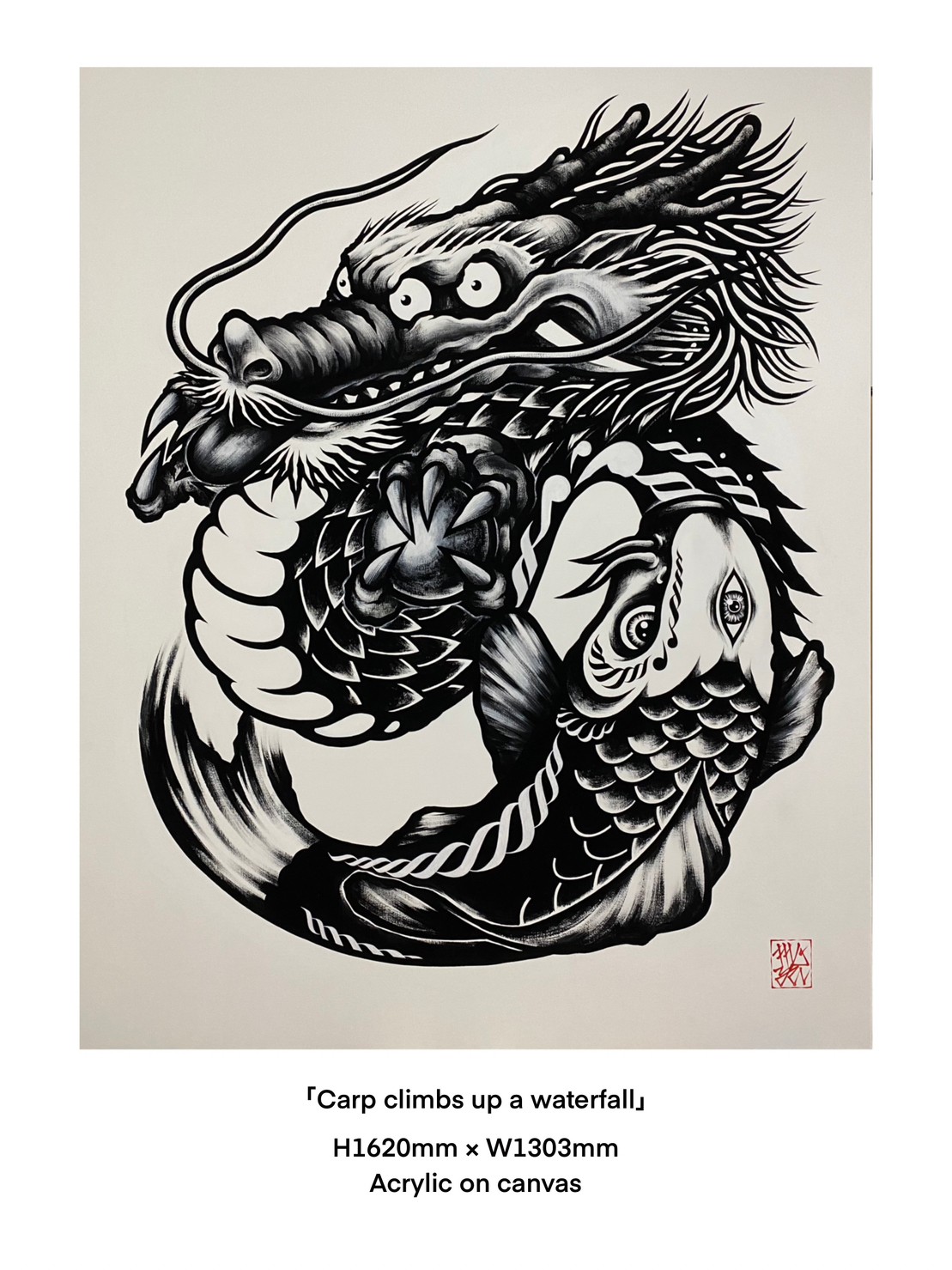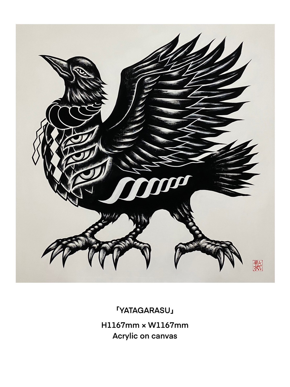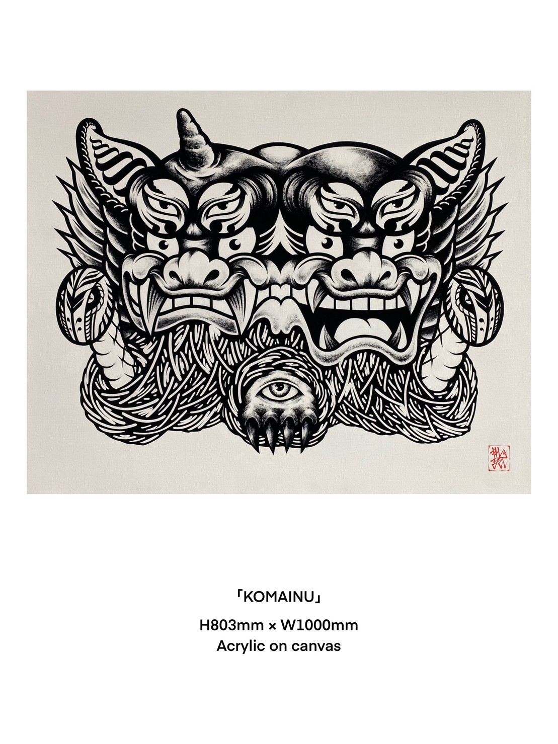 Moya’s works explore theme of legendary and mythical creatures such as the legend that a carp climbs a waterfall and becomes a dragon, which has been handed down since ancient times in Japan, the [komainu] that protects the shrine, the [Yatagarasu] that guides, and the demon. Did.