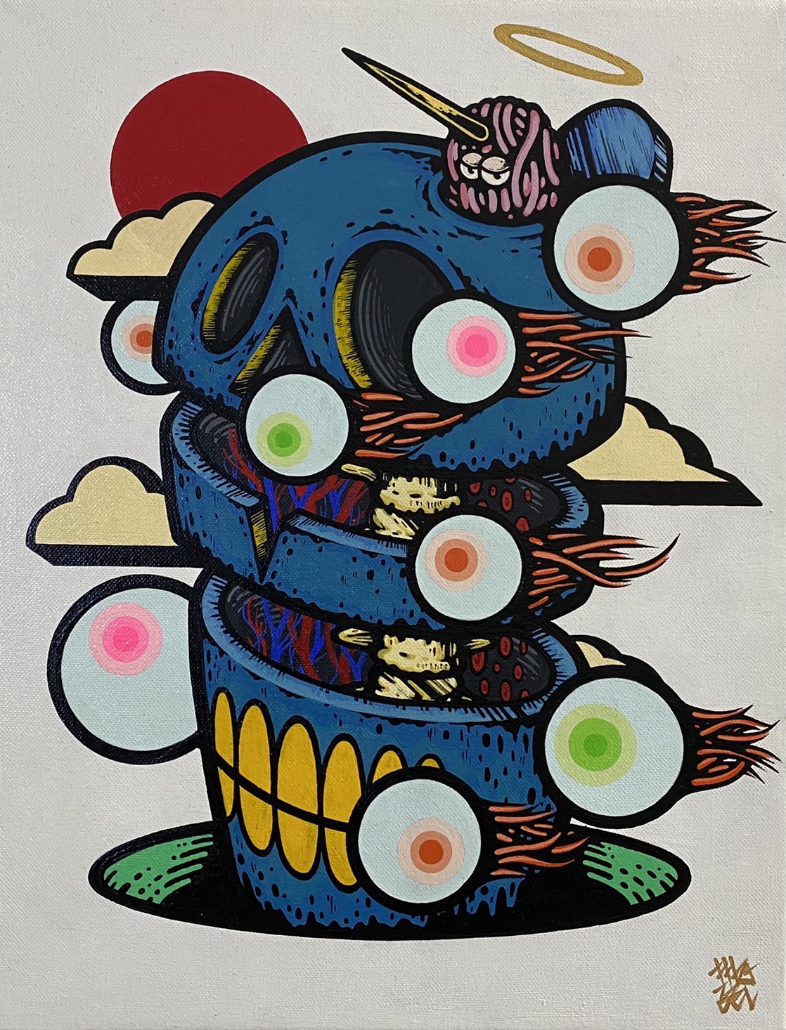 In paintings, I combined the main theme and its accompanying elements and stories in a collage-like manner, and in three-dimensional works, I treated them as real things and expressed the relationship between the real thing and the portrait.