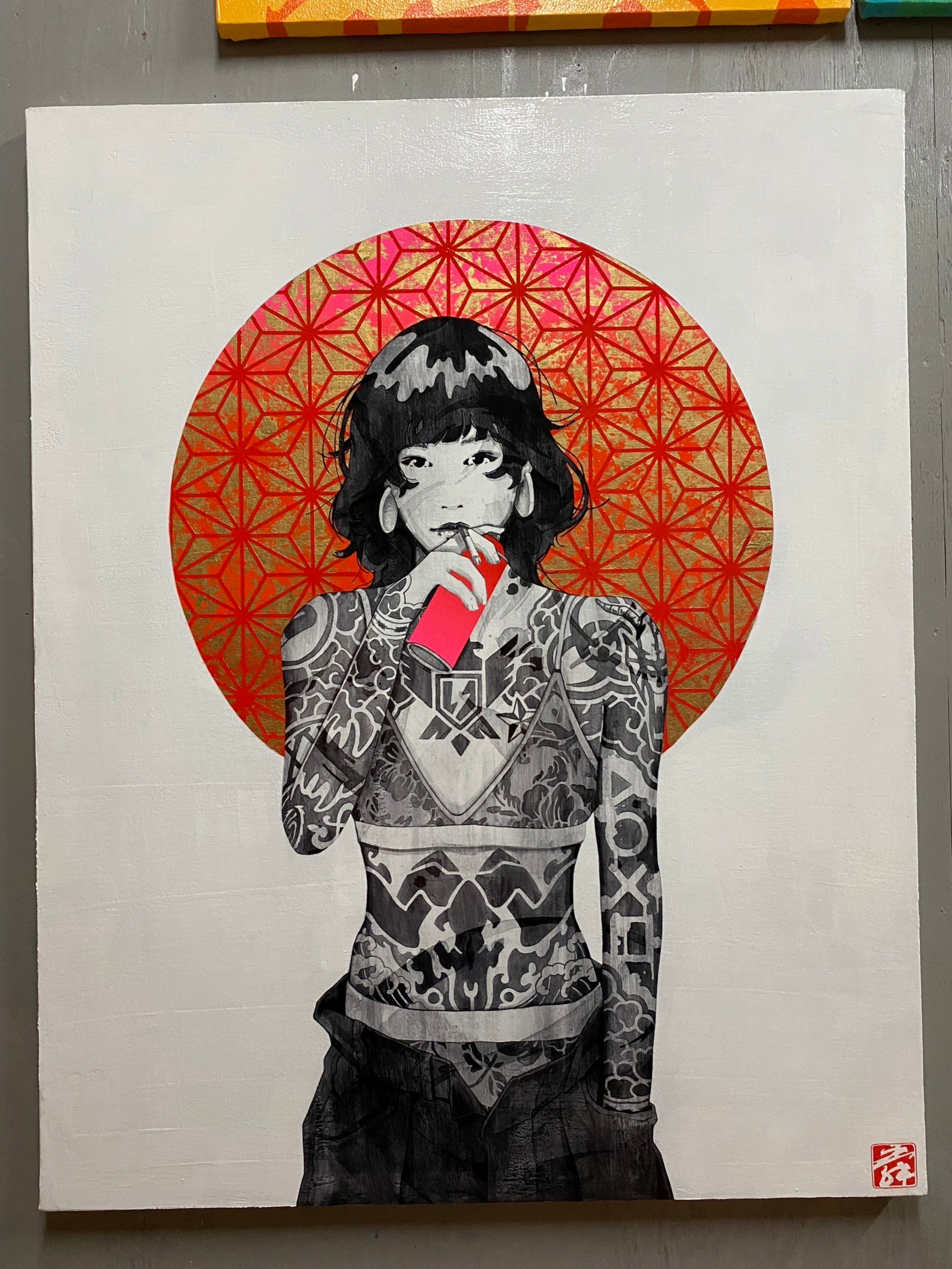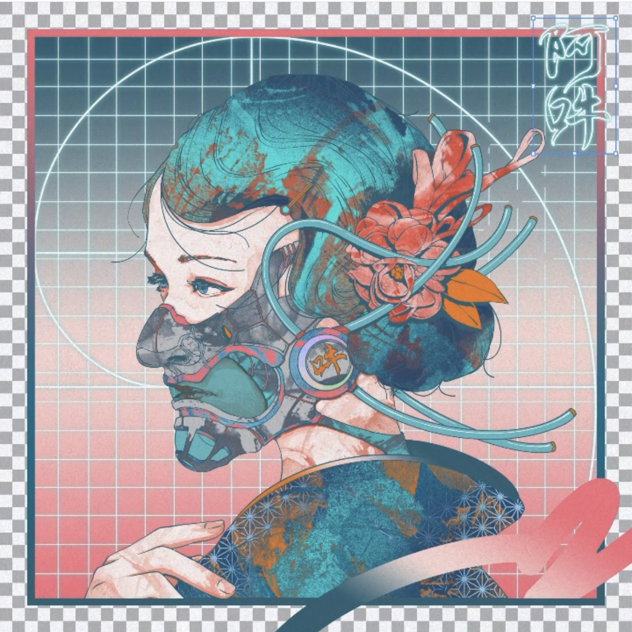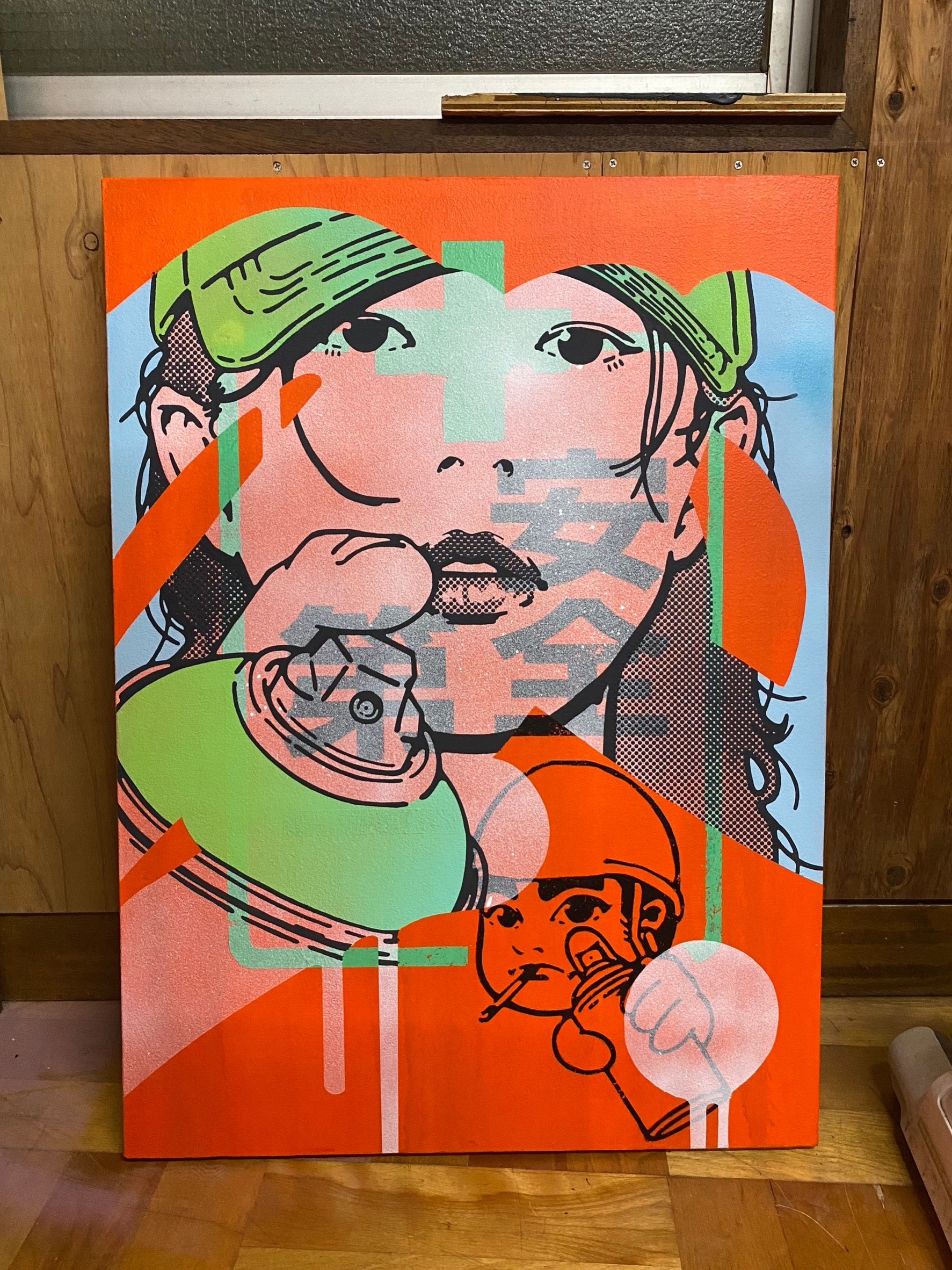 At the same time, he also worked as a painter for the art group “TOUMEI KAISEN” , which was formed by the same university in 2012. From an early age, he was in 80’s fashion and music, Visualizing the discomfort and environment that he feels while living under the influence of manga culture and anime.